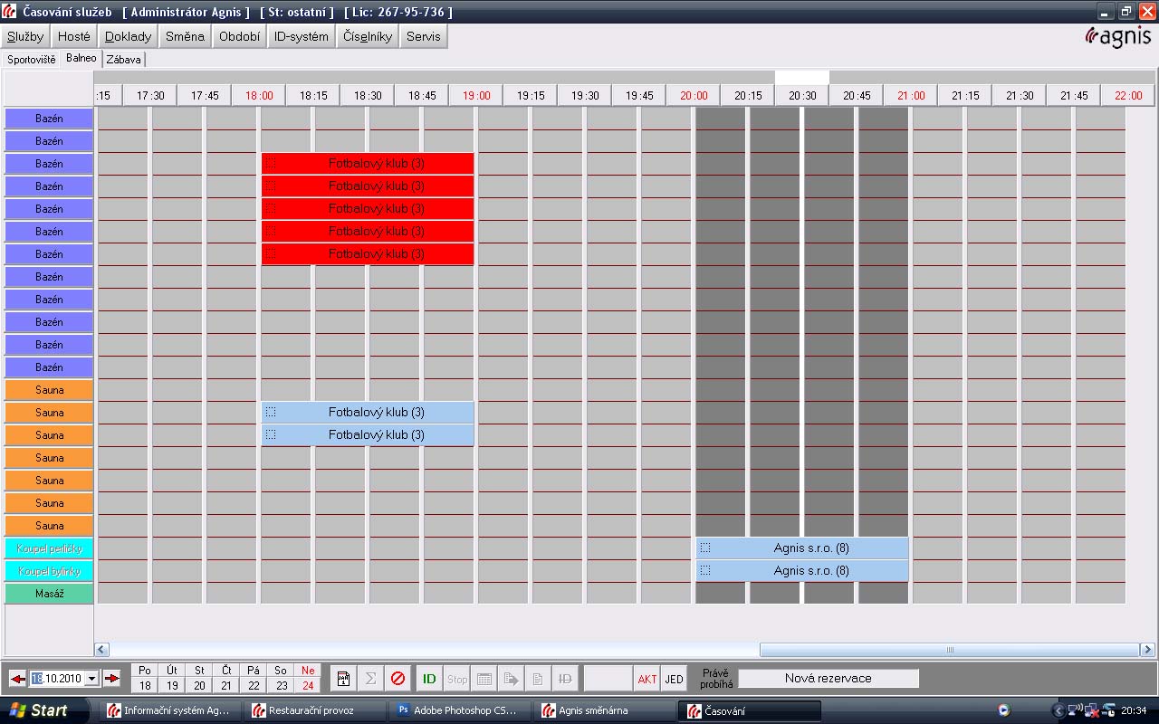 - Rezervace Podrobná přehledná evidence rezervací jednotlivých služeb, možnost stanovení individuálních cen, vedení databáze stálých hostů.